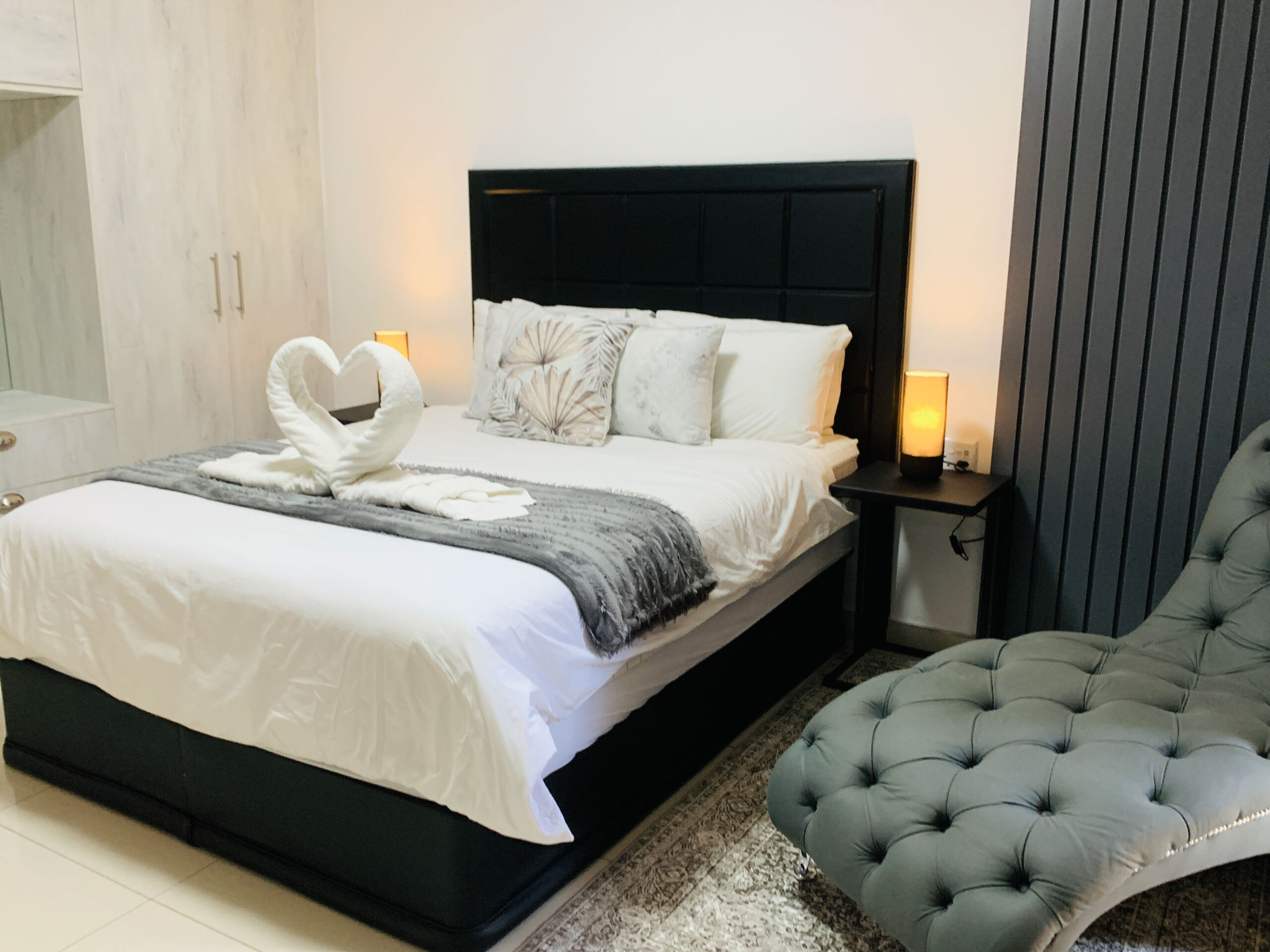 Our studio apartment is perfect for young professionals or the seasoned travelers. Intimate by design and home to a kitchenette equipped with a fridge, microwave, crockery and assorted cutlery, we’ve also equipped it with a queen-sized bed and a flat screen LED TV which can easily be linked to your laptop or cellphone for seamless media integration. The Bar and shared swimming pool are in close proximity while a view of the garden ahead completes the aesthetic.